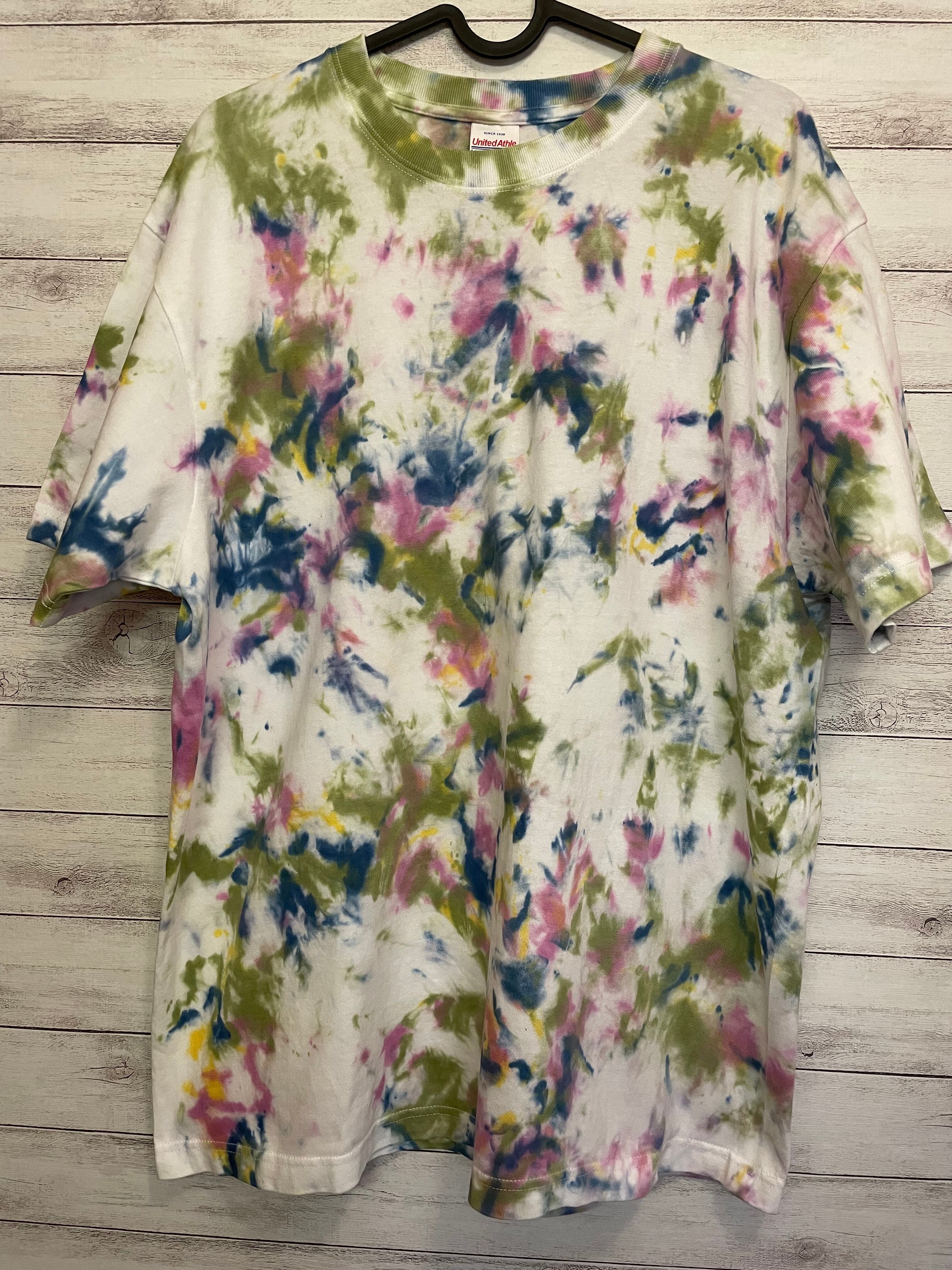 タイダイ染め Tシャツ 春色マーブル L size